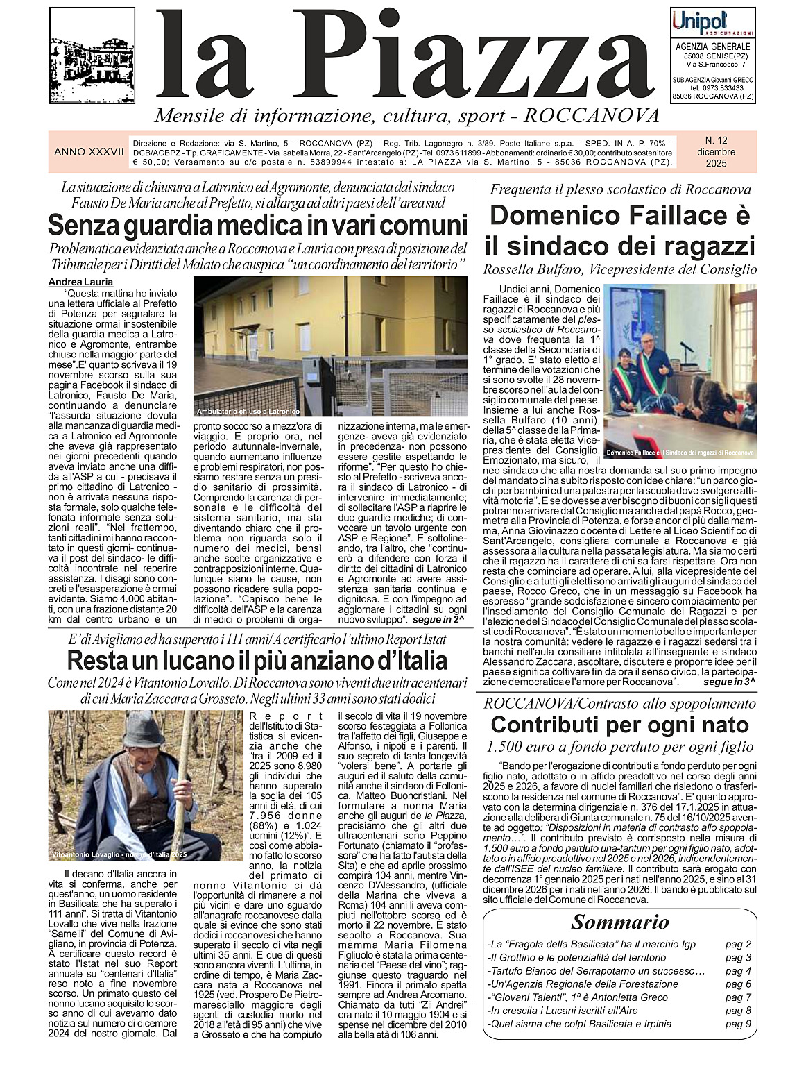 'la Piazza' Il prossimo numero di Gennaio sarà visibile sul sito dal 28 Febbraio. Agli abbonati verrà inviata via e-mail in formato .pdf o via WhatsApp
